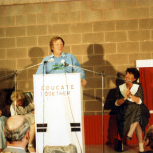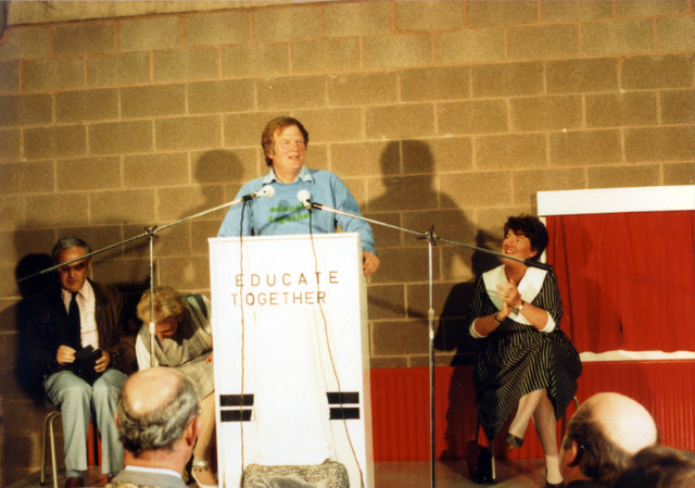 A former journalist with RTÉ, Micheal Johnston co-ordinated the first parent campaign for multi-denominational education in Ireland, together with his wife Pat, Desmond Green, and Bill and Áine Hyland. Their campaign through the mid-seventies faced considerable opposition and was seen as radical, or even subversive in some quarters. Their persistent efforts, however, successfully attracted sufficient political and public support for the Dalkey School Project to be sanctioned to open in 1978. This school then proved the catalyst for a number of new multi-denominational schools and the founding of the Educate Together patron body in the following years.